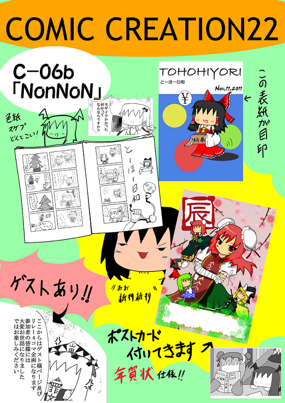 おそらく「とーほー日和2(仮)」の発行は次回の博麗神社例大祭もしくは夏のコミックマーケットになるかとおもいます。